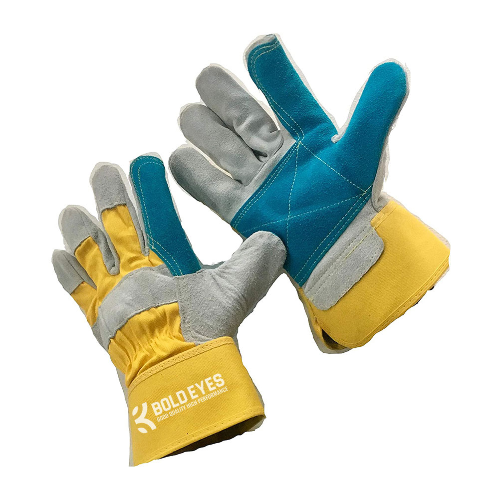 Made of cowsplit leather cotton fabric on back, and rubberized cuff.